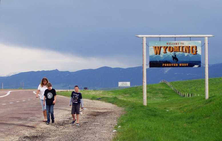 And then I was in Wyoming. The wild west features in this welcome sign, the youngsters in the pic having just had their photo taken by their grandmother. They were from Oregon.