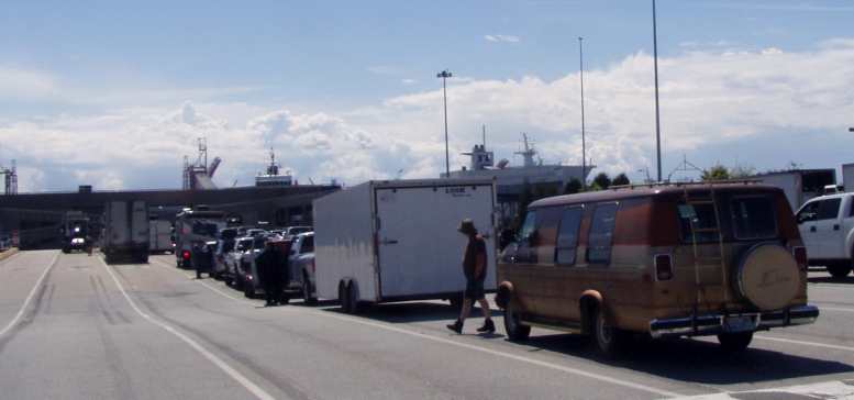 Awaiting boarding time. After paying for the ferry ride we were directed to line up in one of the queues ready to drive onto the ferry.
