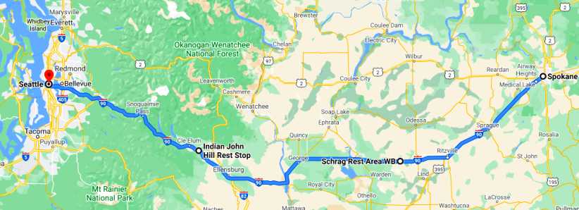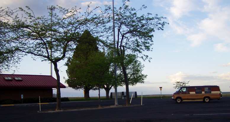 Still we were motoring and we had a solid initial run out of Spokane late on Saturday afternoon until we came to this rest area 80 miles out: