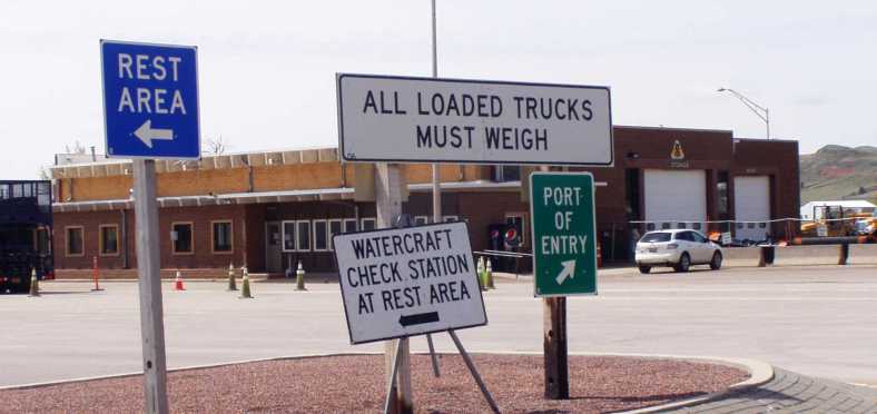 Port of Entry. Trucks have to stop here before going on to enter Wyoming. Weight and compliance are checked.
