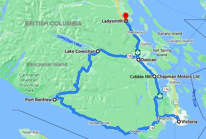 So we drove off to Tsawassen to board the ferry for the 2-hour trip to Nanaimo on Vancouver Island. It's all very efficient, as you would expect from a setup that runs as many ferries in a day as they do. The cost of the crossing was $88.80 (Canadian) with the 'oversize vehicle' costing $53.25 and two adults $16.50 each, while there was a fuel surcharge of $2.75.