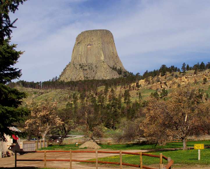 From the campground. The Devil's tower is certainly imposing, though I don't think it's really 1200' high. This is from the campground at the entry to the park.