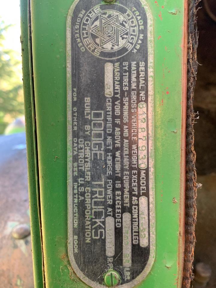 I just purchased a 1946 Dodge WF 32 Flatbed truck. It has a 236 cu. in. inline 6 cylinder coupled to a 3 speed manual transmission. This is a dump bed, so it has a PTO to drive the hydraulic pump to lift the bed. It's a sweet truck and in really good condition considering it's 75 years old. Only minor dents in the body and no cracked or broken glass. Even the upholstery is in good shape. My friend and I just started to clean it up and make a list of the parts needed to get it running again. There are some hoses missing and the distributor cap and rotor are missing. The points and condenser will need to be replaced too. It needs a battery. We don't know much about the truck, other than it was used on a walnut farm some where in the central valley of California. The truck is currently sitting on my friends property in Colfax, California. Anyone here got a line on parts for this truck please send me information. I'm sure as we get into this we will find that we need a lot more parts than I mentioned. Our intention is to restore the truck to as original condition as possible. I'm looking for a shop manual too. If anyone knows where to search for a manual let me know. Thanks, I look forward to talking with you in the future.
