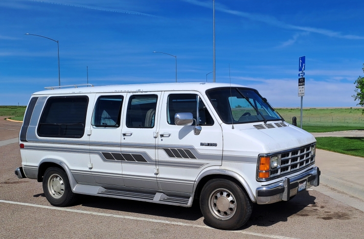 Also an oil-user is the latest addition to the 'fleet'. I spent two months in the US this year and used yet another Conversion Van. This one is based on a 1991 B250 and I've again covered about 7,300 miles in it. A throttle-body injected 318 with a 4-speed auto (which I've yet to see select fourth...), it has alloy wheels, a 9¼" rear end and 5.5" lug circle.