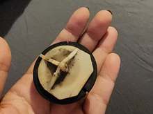 Hard black plastic pieces in pan under the oil pump.