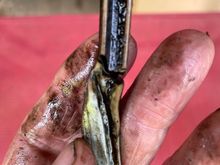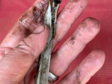 With house key to give some perspective on size. The hole that passes through into the head (at the bottom of the larger diameter hole) is about half the diameter of the larger one.