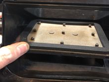 HVAC housing with top of heater core above edge. Hot air coming from side, flowing up toward dash structure.