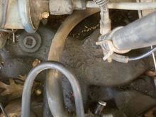 Middle of the driver side exhaust manifold, hard to get an angle but I can see pretty far into it.