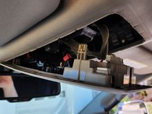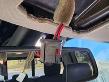 Accessory (added red wire on left) and ground (added black wire on right). The Acc+ wire supplied with the hardware kit is yellow but I used a slightly larger wire and spade to piggyback with the connector to avoid cutting the original wires. After wrapping the bundle tightly with self-fusing silicon tape, the connection is reliable.