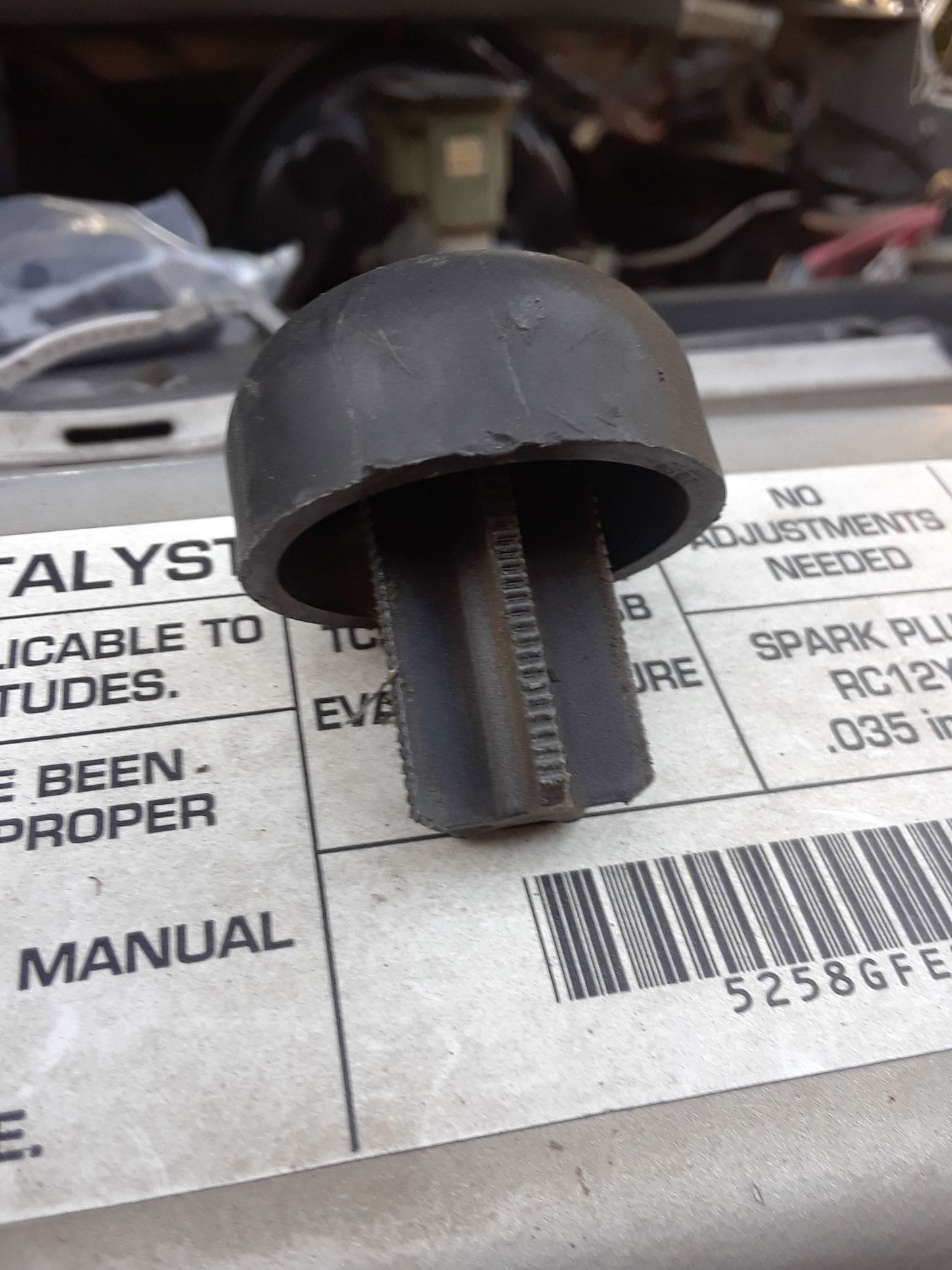 Here is the mushroom piece I pulled (along with a section of the hose it was attached to). You can see the ribs where it goes into the hose.