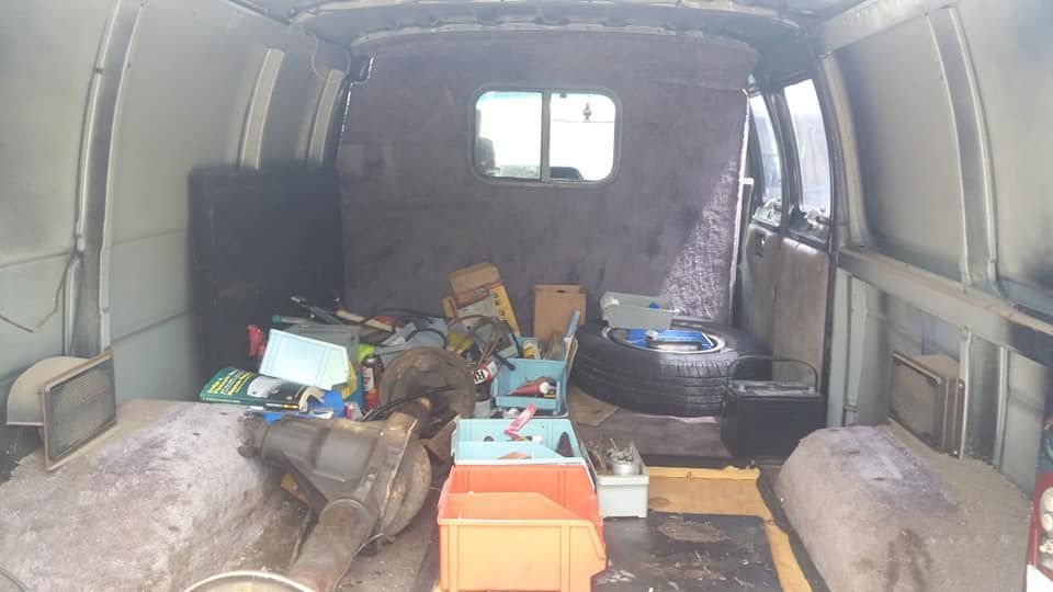 Back end after shelving units were removed.