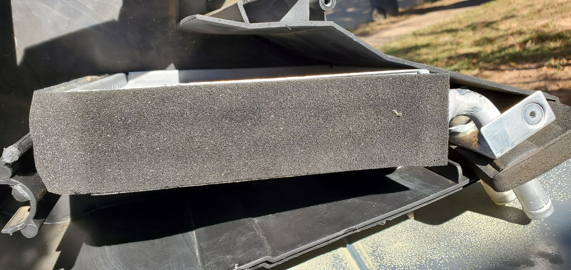 The new heater core came with gasketting, save for that big one. Which in this pic is on the wrong side of the housing.