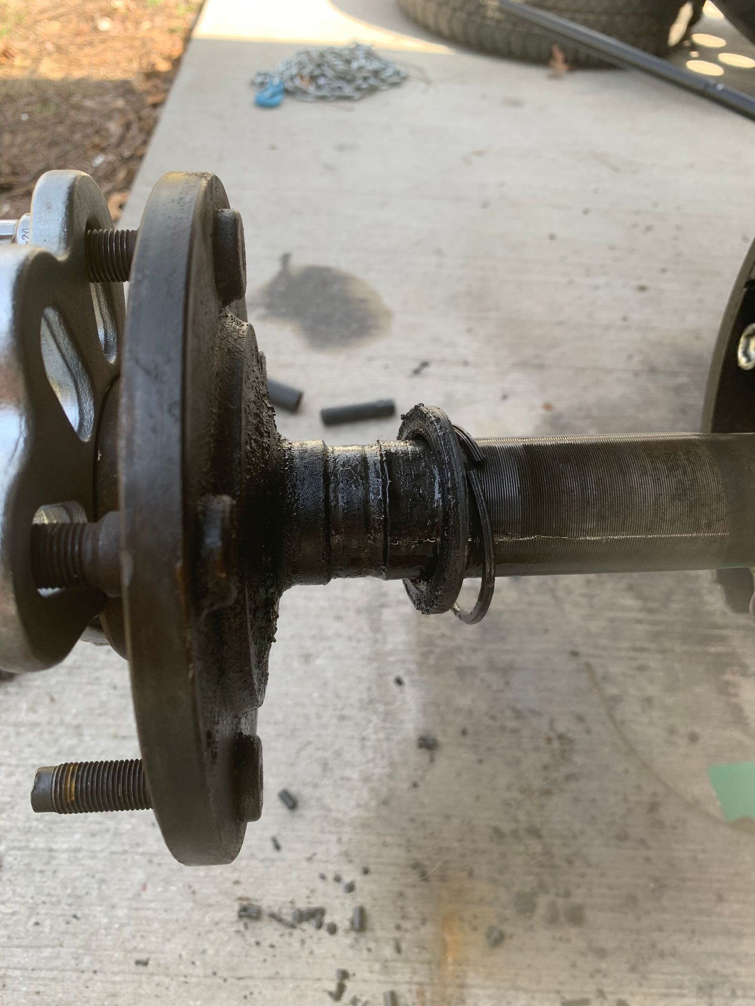 Finally got it loose nice groove in axle and bearings fell out so I guess bearings failed. Kinda blows since a shop just did this side. I looked on rockauto for a new axle but confused the ones they show have slightly different lengths. Will that matter.
