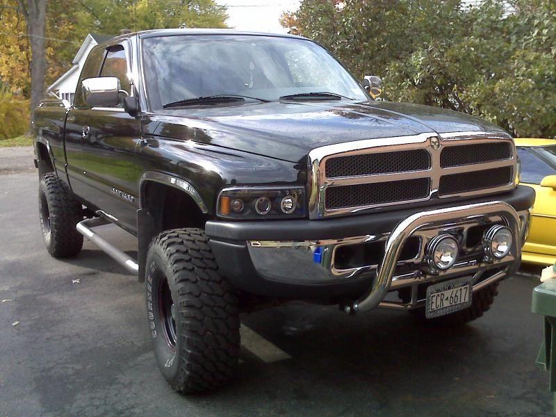 new ss bullbar ...had to weld custom bracket due to bodylift... notice the harbor frieght 6" kc knockoffs...(thay actually changed the harbor frieght lights to make them completly like the kc's except the 55w versus 100watt bulbs)....but at $15 versus $109 I really dont care about the added power right now...