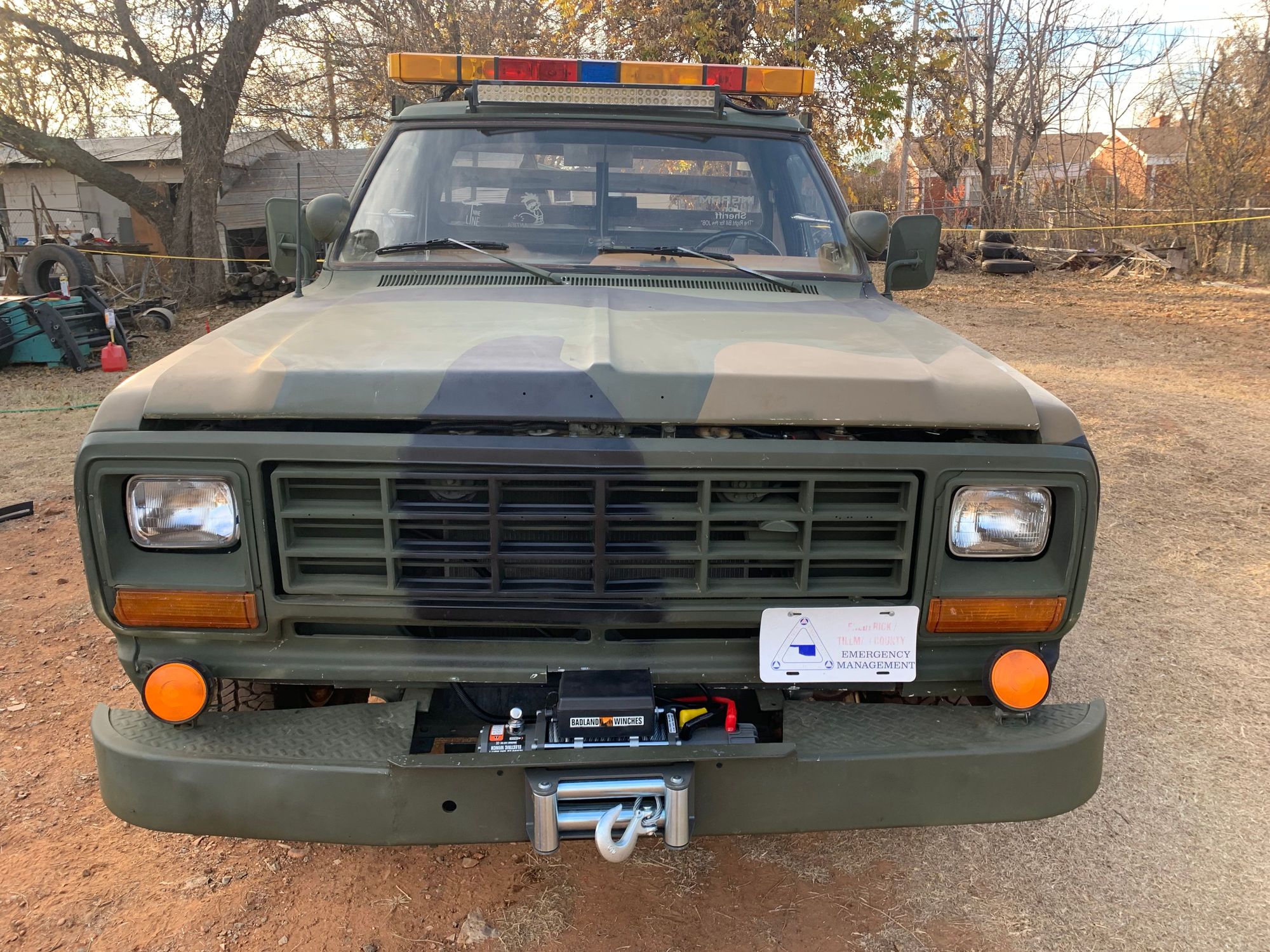 Front winch bumper off of an old Ford F-150 sporting a 12,000 lb. Winch from Harbour Frieght.