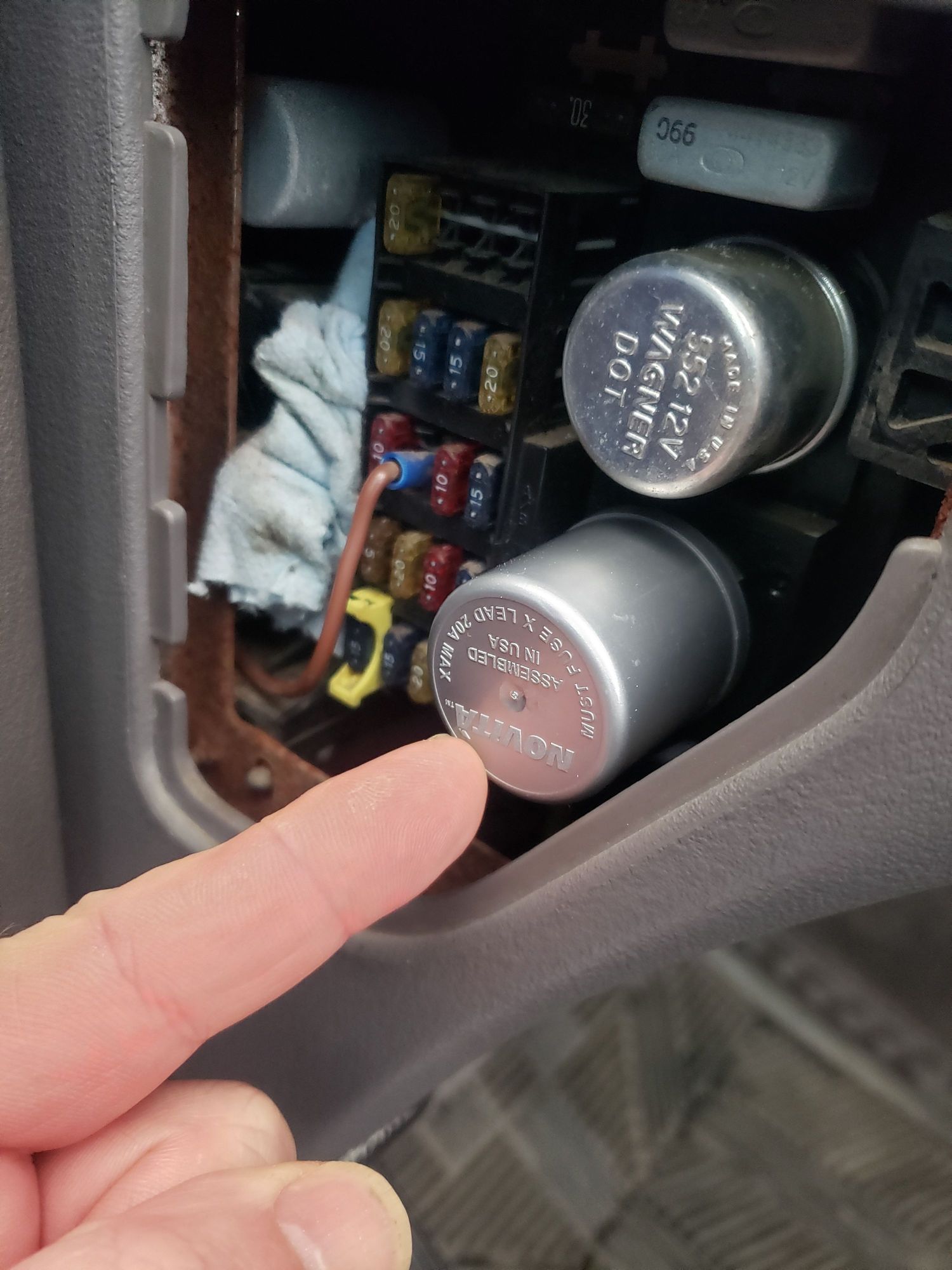 96 Ram 2500 V10 fuse panel driverside dash. Top round fuse works the hazards and the bottom one works the turn signals. Super simple fix!