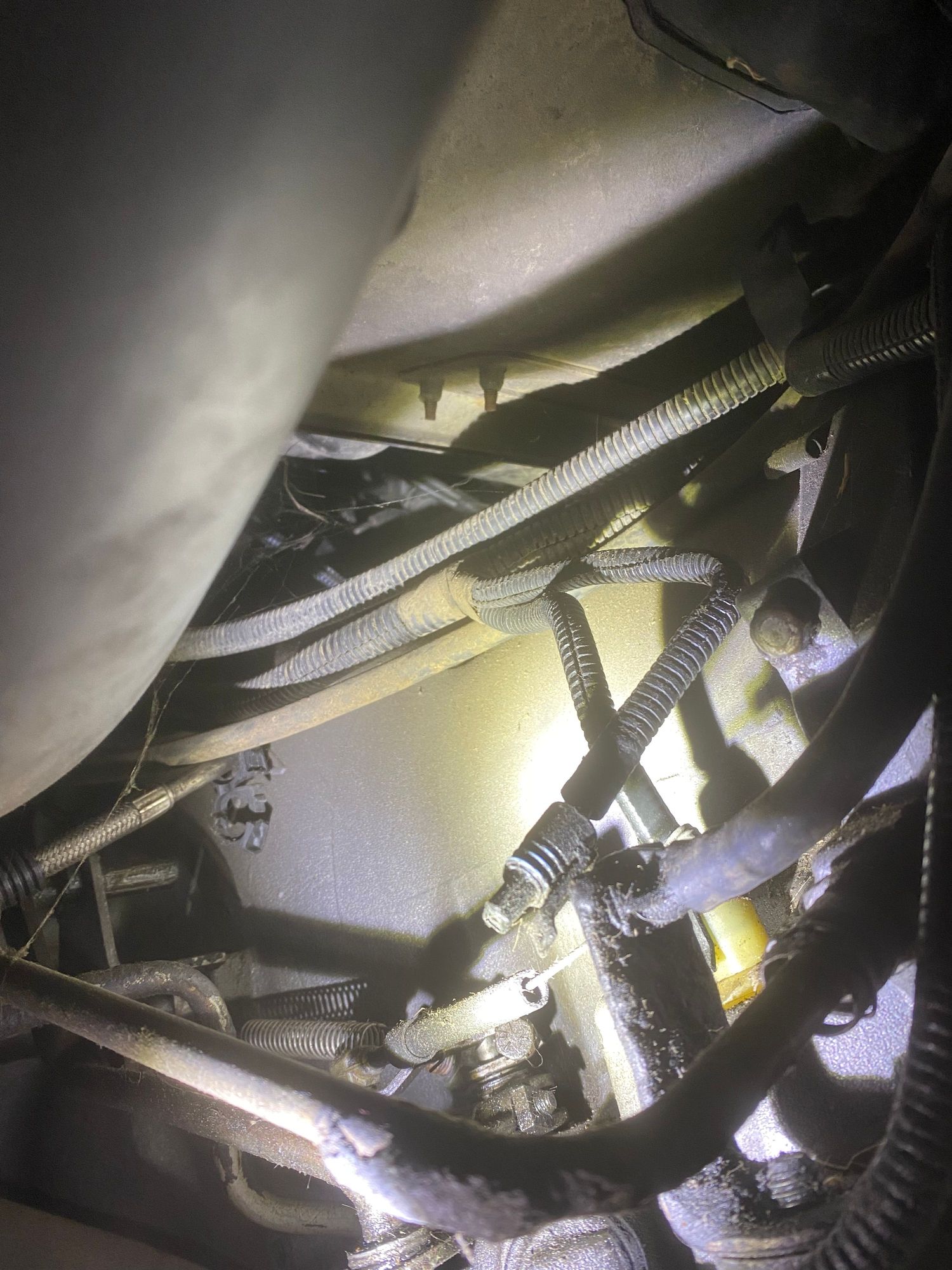 Black cable with blue on terminal hanging loose
