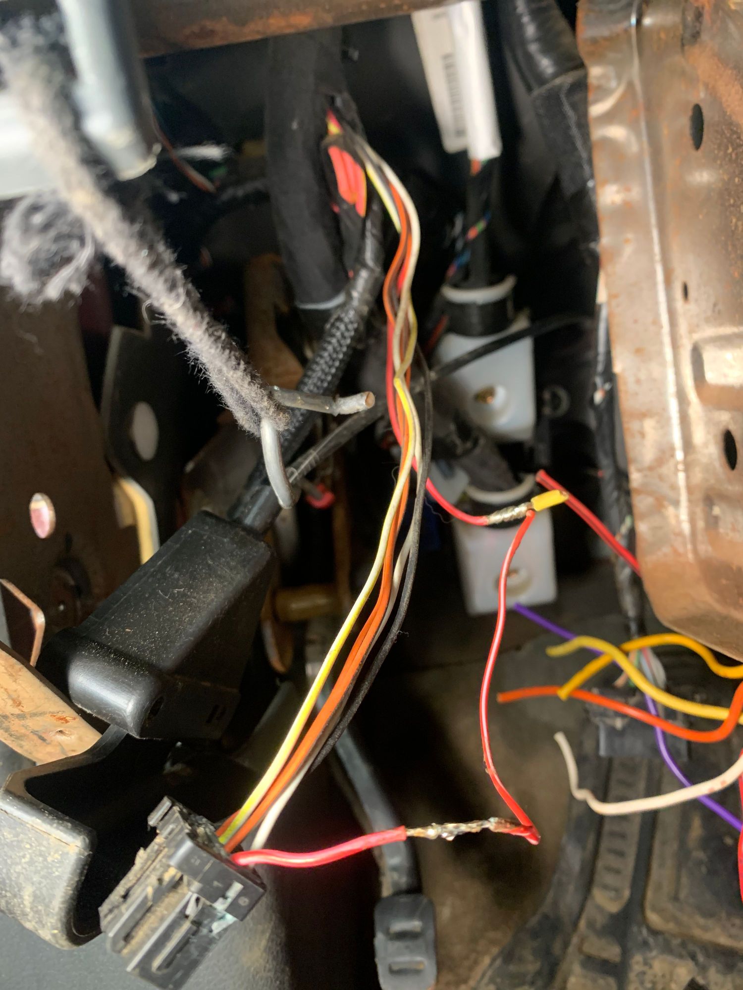 There is this random red/white wire spliced into pink/whit not sure why? And then has a cut yellow wire?
