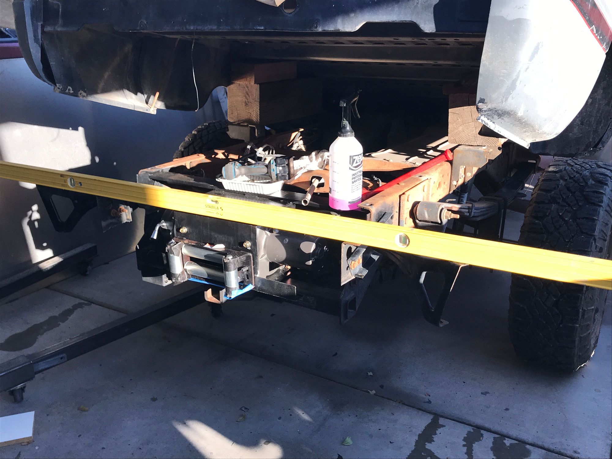 Not using the level per se, just a convenient straightedge. Set the drop off the frame a then straightedge across.