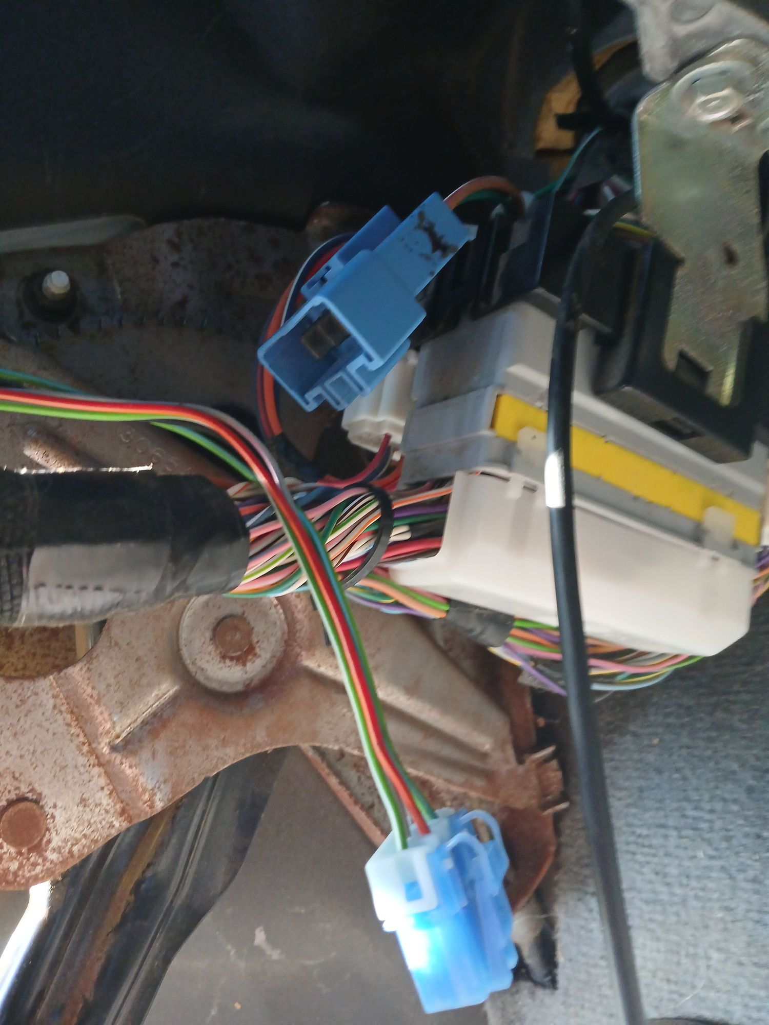 They are under the dash just left of the steering column...