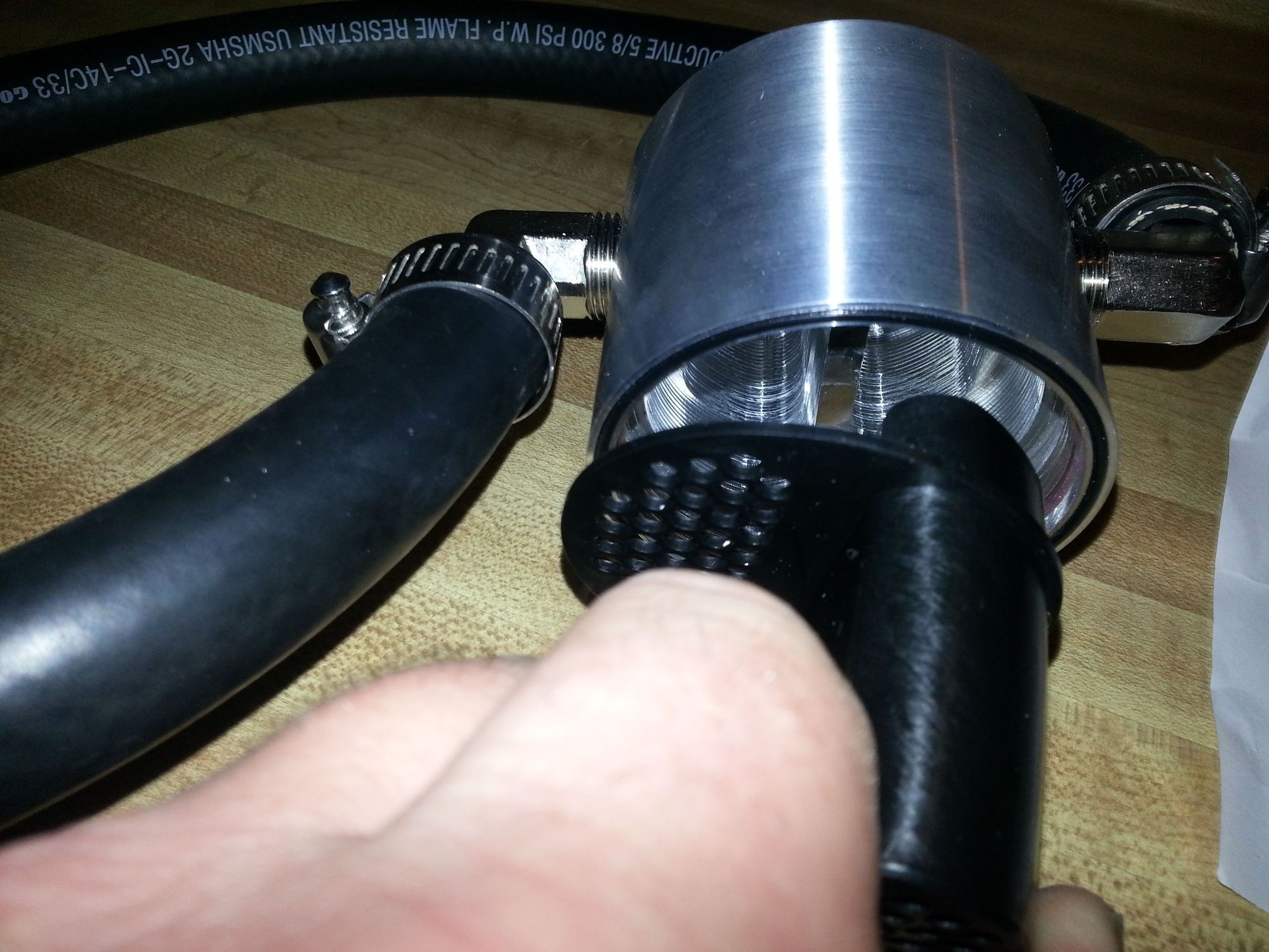 This portion of the oil insert goes to the valve cover side so the oil must drain down through the whole lower protrusion before the gases can come back up the other side. This helps separate the oil from the gases.