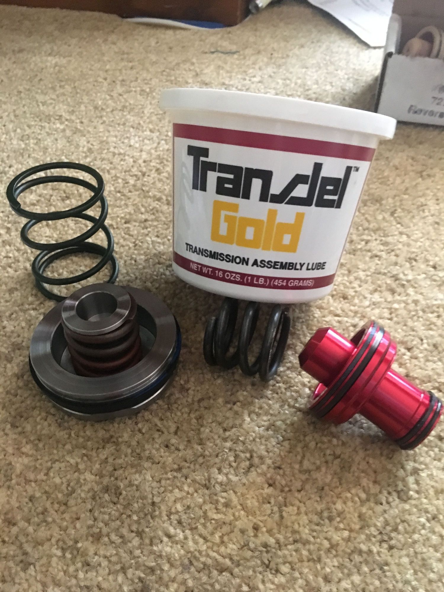 Since Mopar discontinued the rear servo piston spring, I went to a local trans. shop and they hooked me up w/ a new spring! And good thing too bc the replacement A727 trans. spring they had was almost a half inch too short!