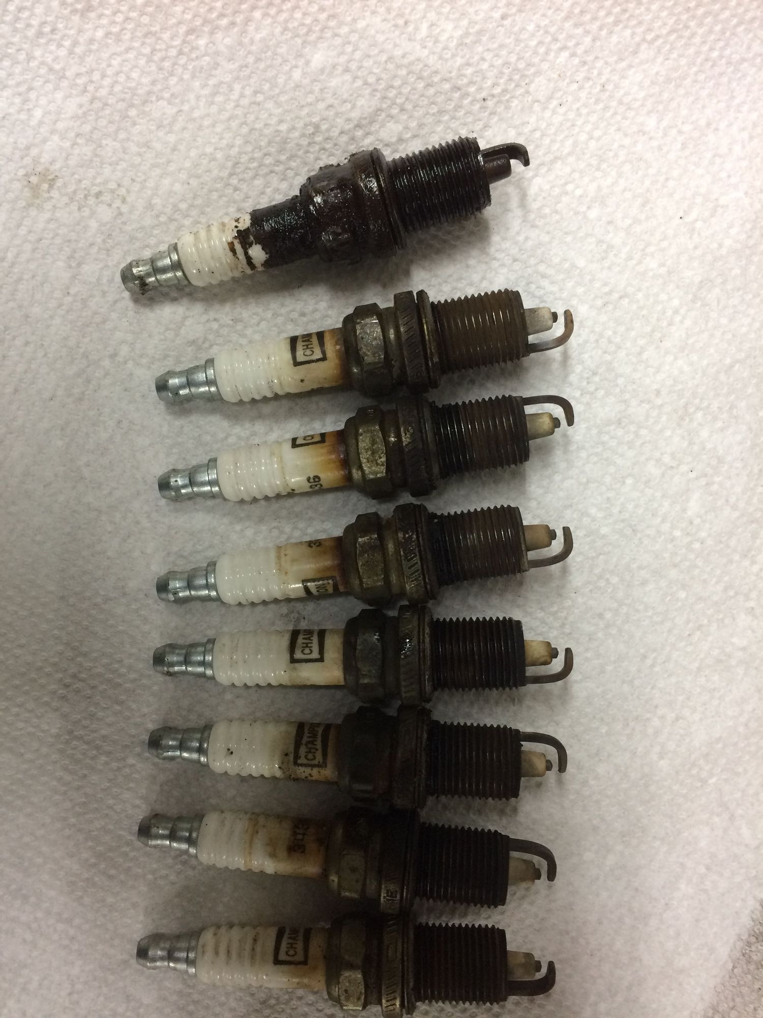 Did some routine maintenance in order to track down a cylinder 6 misfire. Top plug came out of number 6 with a lot of difficulty. Electrode is burned down past the level of the porcelain. Rest of the plugs had lost about .015. Runs much smoother now.