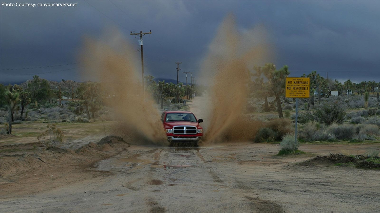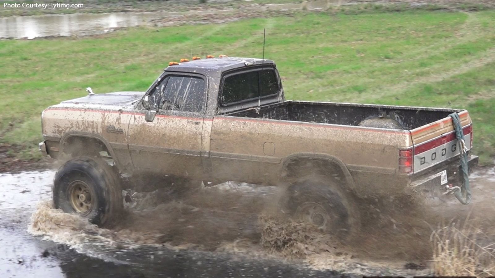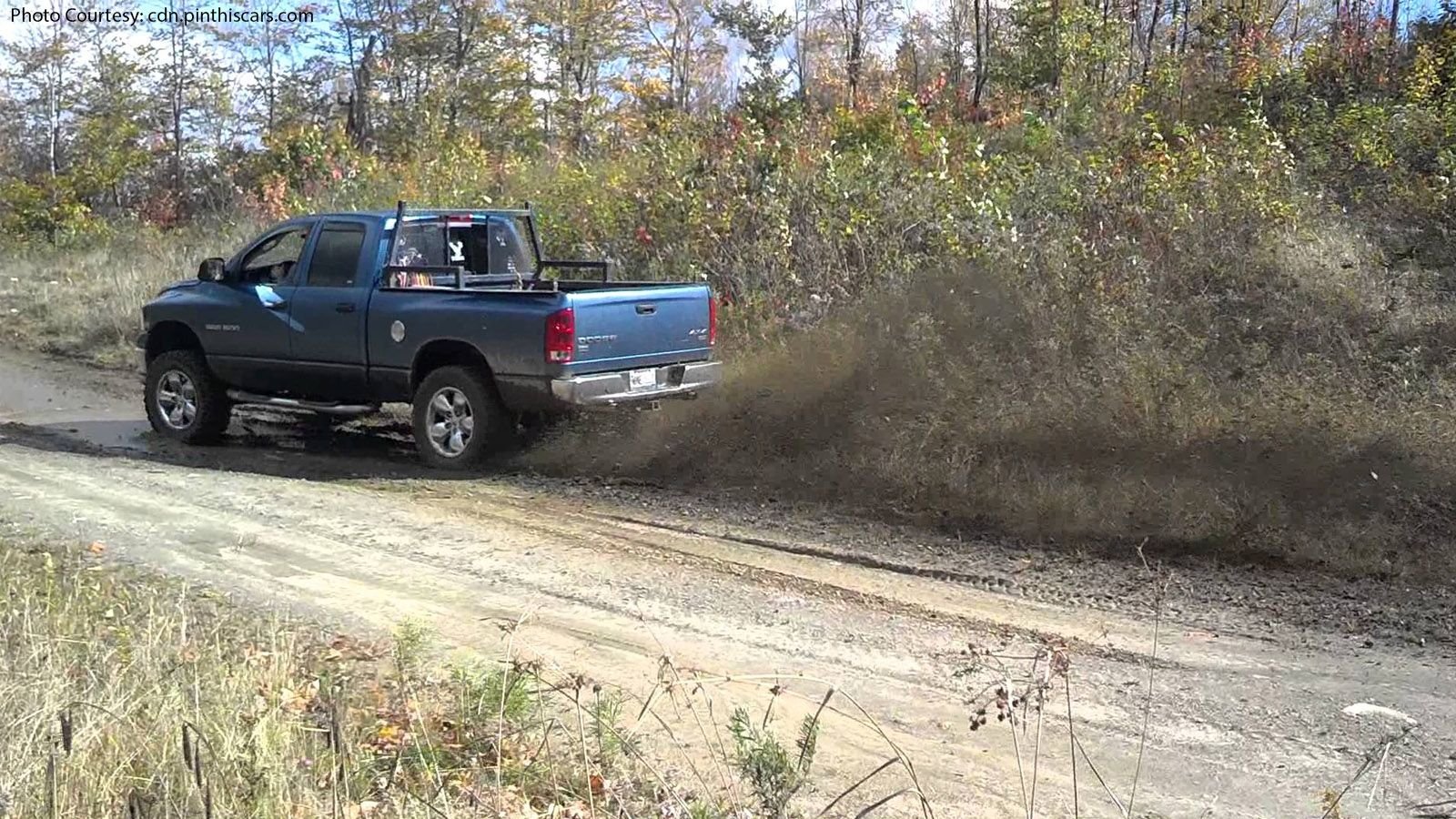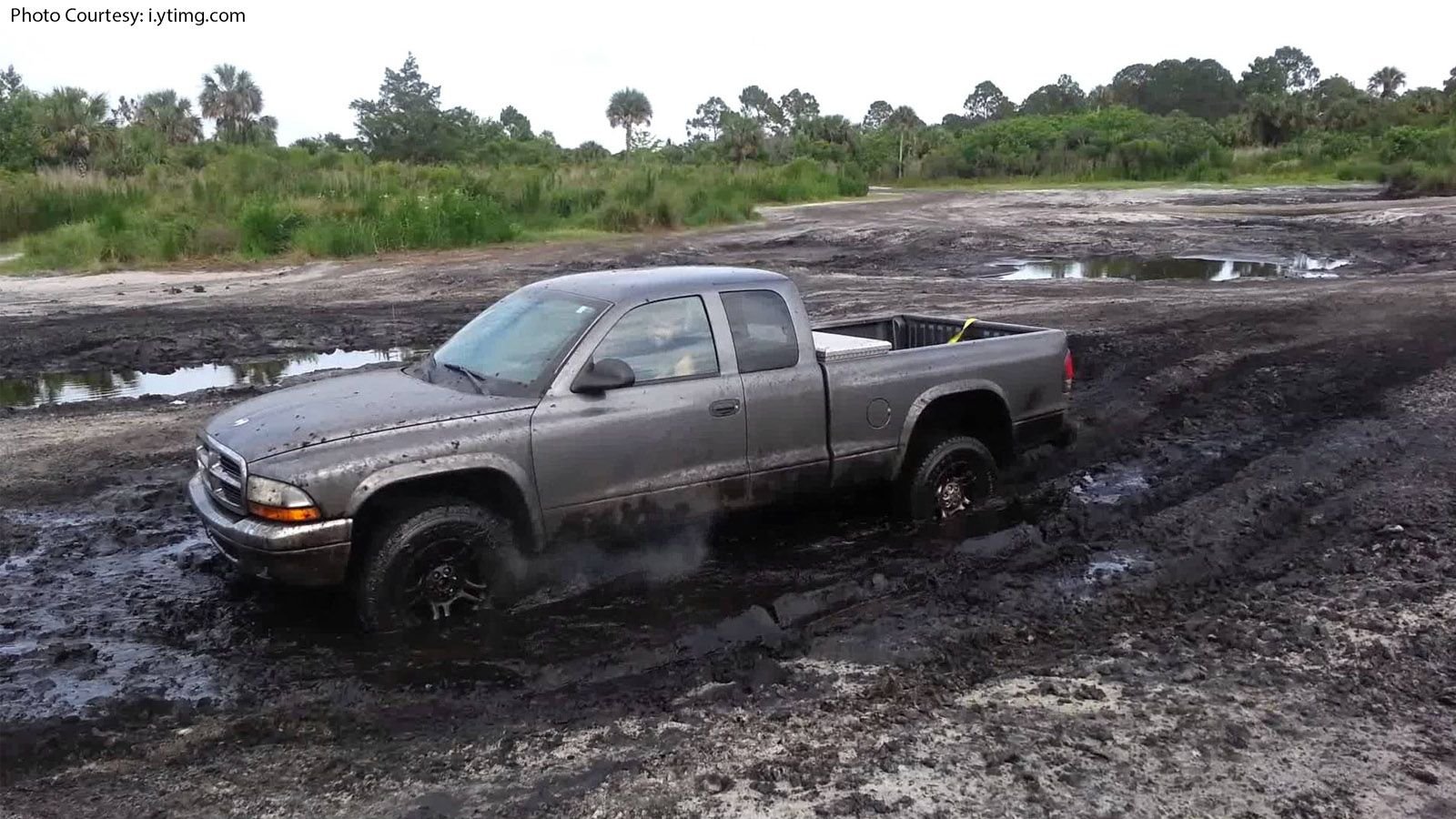The best thing about mud is that it can always be found somewhere. Just some water on a dirt road, and you've got yourself a fun day. This Dodge truck is making the best of the little mud on the side of the road. Make sure no one is coming down the road, and just step on it.