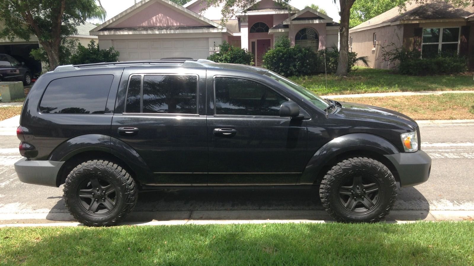 For the fans of blacked-out cars, forum member Rango226's 2007 Durango will not disappoint. It sits on 33-inch MT/Rs and a cranked torsion bar. Rango226 did not go cheap with the blacking out, and aside from the vicious black wheels, he has a blacked out grille, taillights, and headlights. This is the perfect SUV for fans of the dark, ominous, mysterious look.