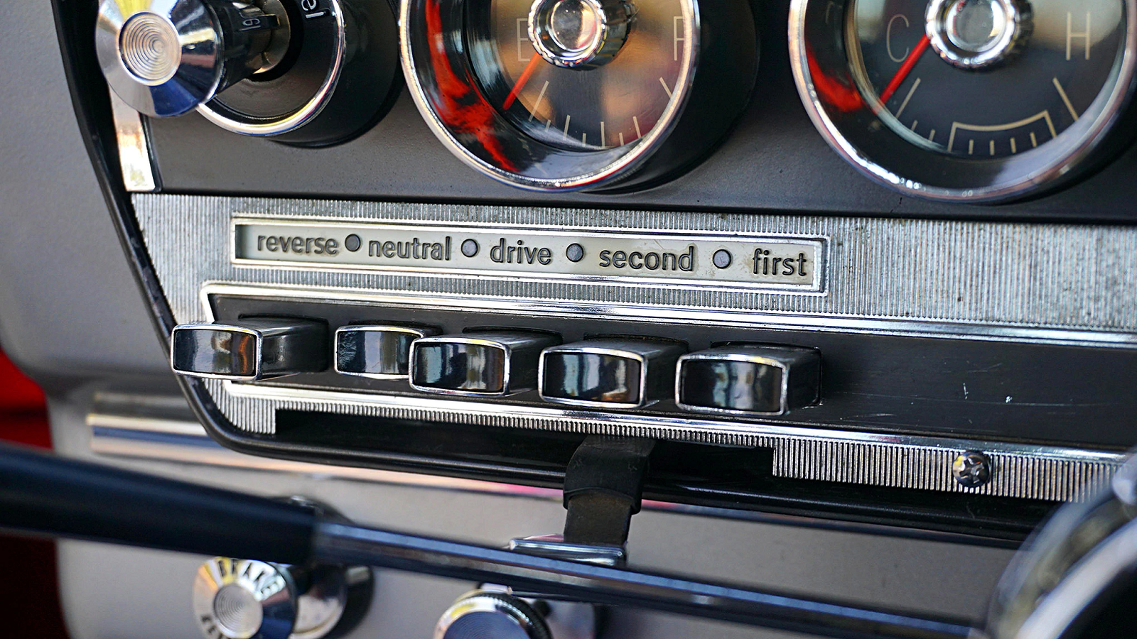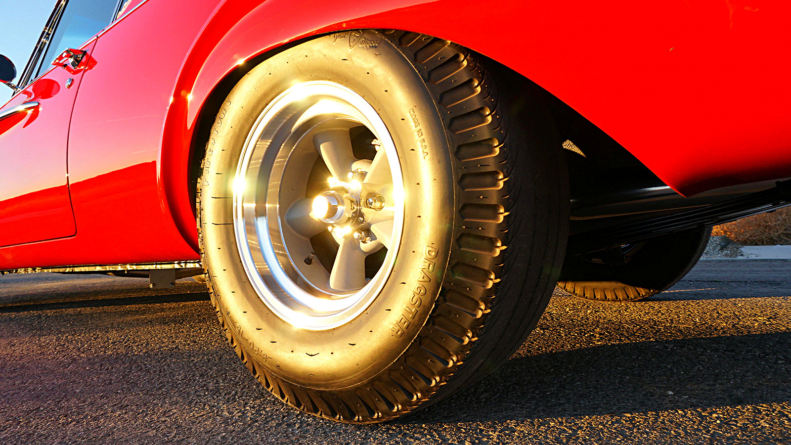 The big engine is backed up by Chrysler 727 TorqueFlite that Lyman shifts via Chrysler's famous push-button factory setup on the dash. It sends all that power back to a 3.55-geared Sure-Grip rear end and a set of 820×15 Firestone Cheater slicks mounted on classic American Torq-Thrust wheels.