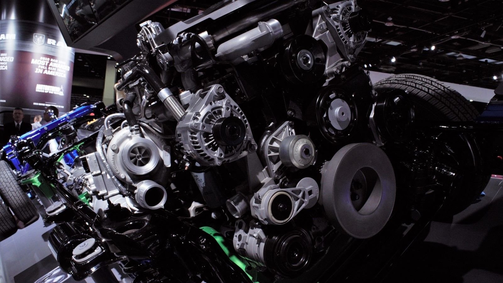 That 1,000 lb-ft of torque is a huge number. Not only is that enough power to pull the moon into a closer orbit, but Ram is the first truck manufacturer to reach that number in a standard passenger vehicle. The engine is utilizes compacted graphite iron, and is over 60 lbs lighter than its predecessor. A new cylinder head sits atop with block with redesigned exhaust valves and springs, and new rocker arms.