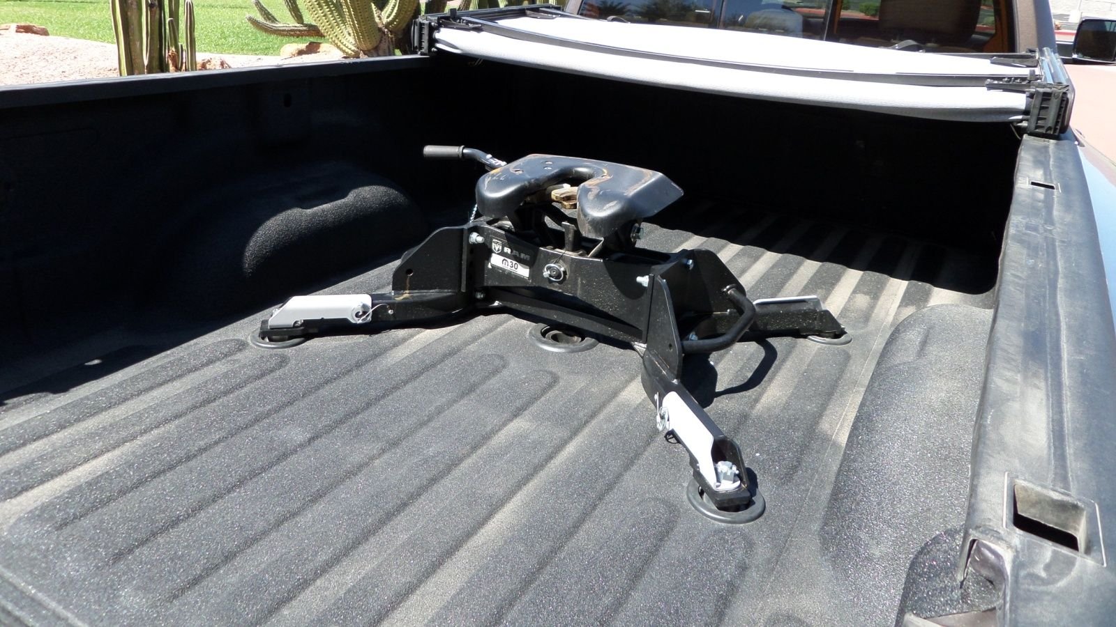 This truck had the gooseneck hitch located on the bed. It limits the cargo room but allows up to 35,130 pounds to be towed. This is part of the "Max Tow Package" that includes the gooseneck, 4.10 rear axle, cargo view camera, auto-level air suspension, and more for $3,695.