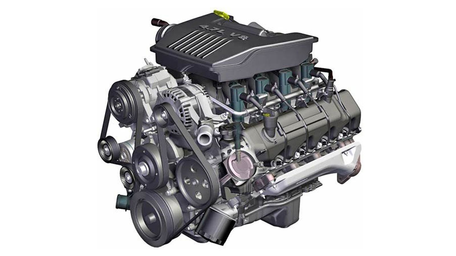 The 4.7-liter engine is nearly identical in design to the 3.7-liter. Most parts interchange between the two. The 4.7 engine brings a good mix of power and economy with 235 hp and 295 ft./lb. of torque. These numbers were raised in 2008 to 310 hp and 330 ft./lb. of torque, making it a close competitor to the Hemi. Fuel economy is decent for the engine size at 14 mpg city and 19 mpg highway.