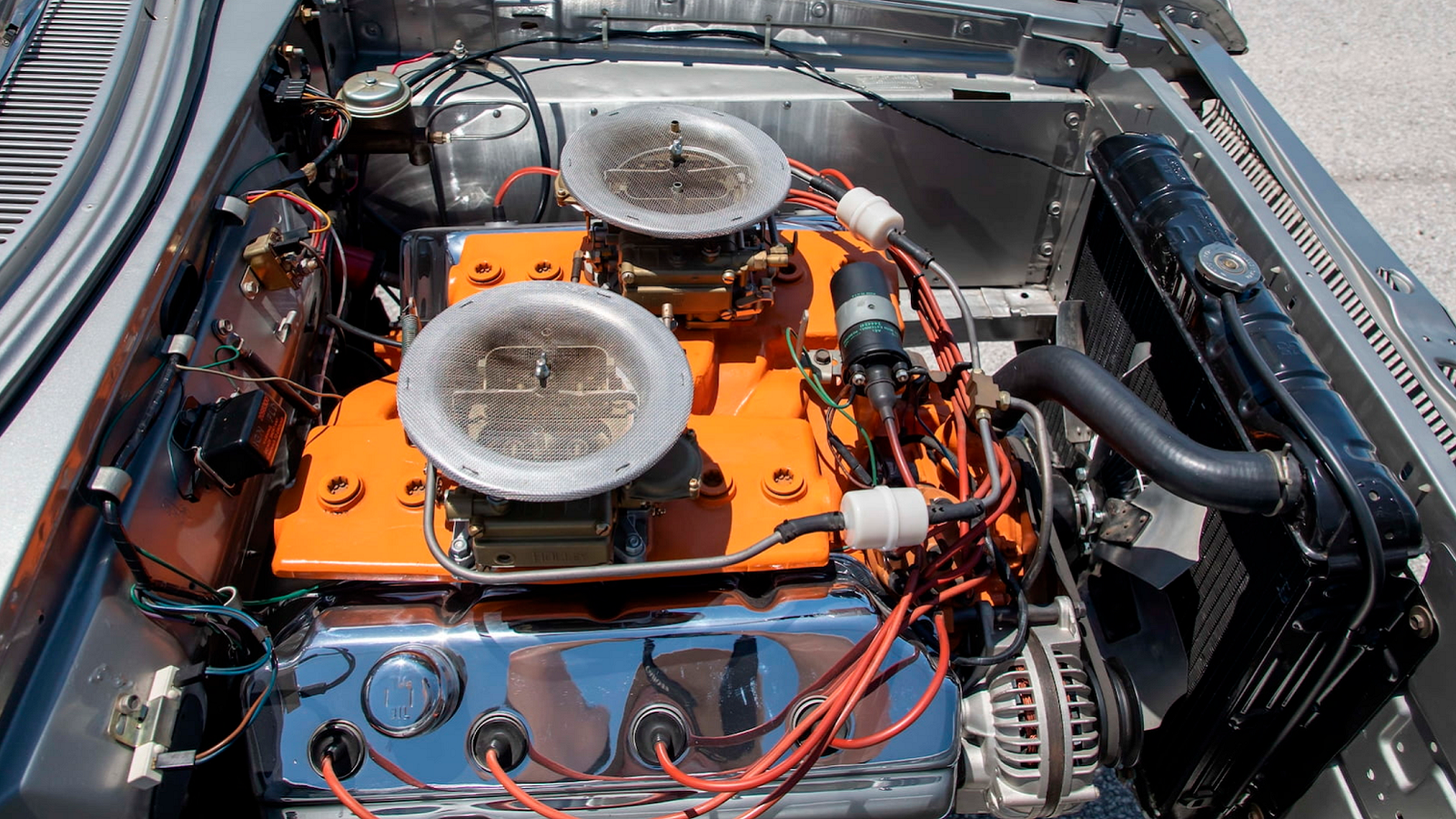 The heart of the car is, of course, its A864 with the correct K-code iron heads, an aluminum cross-ram intake, dual Holley 770 CFM carburetors, and Doug’s Headers.