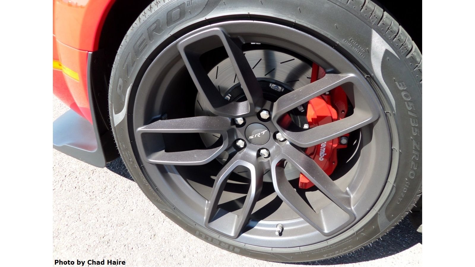 Redeye cars are scheduled to get Pirelli 3-season or all-season tires. The front brakes are large 15.4-inch 6-piston, while the rears are 13.8-inch 4-piston brakes. They do a great job of hauling this 4,500-pound beast to a halt.