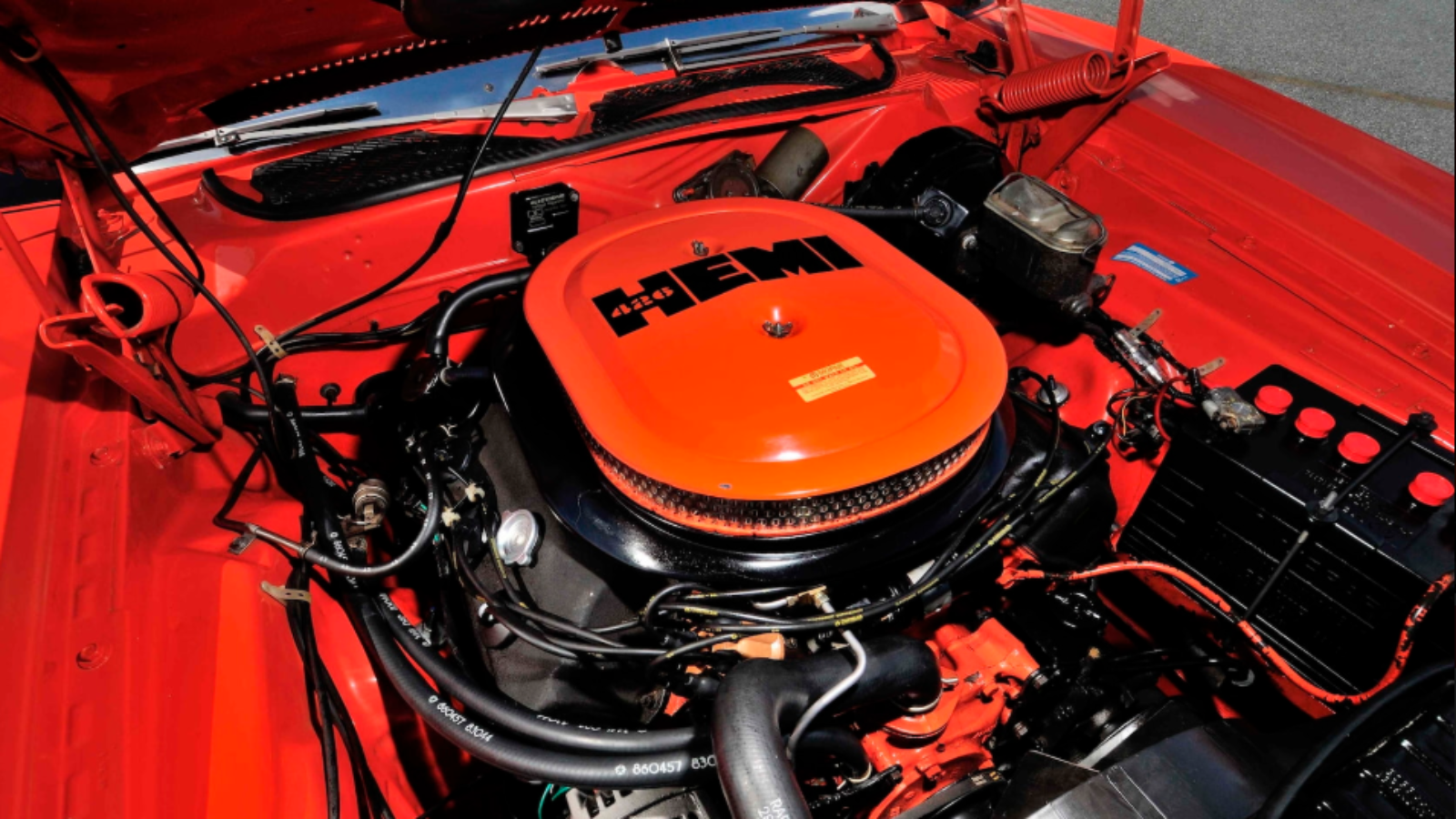Propelling this classic is a 426 ci Hemi V8 which pumps out 425 horsepower. This unit has been fitted with two 4-barrel carburetors. Getting all this power to the road is an automatic transmission.