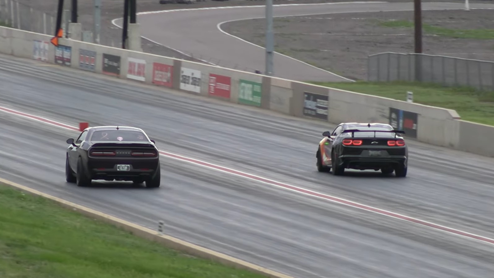 The Camaro clearly has a significant grip advantage out of the gate, leaving the Challenger behind in what would seem like a mismatch. But as they both gain speed, the Dodge starts to hold its own, finishing closer to the Camaro ZL1 than many would imagine.