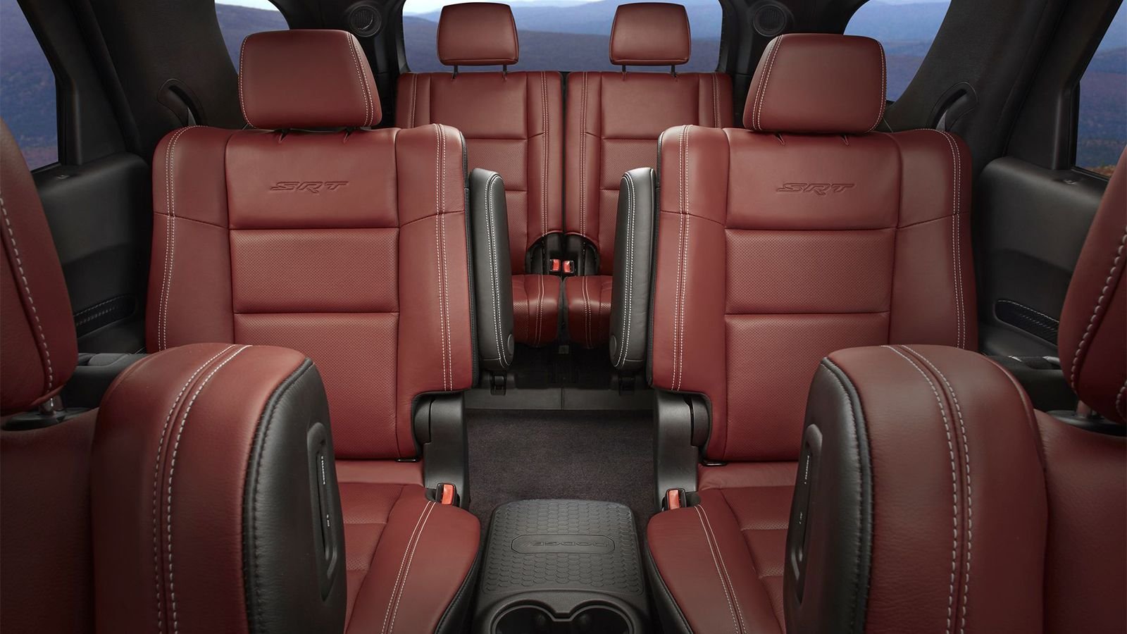 Even though the SRT Durango is an absolute beast, it's is a pleasure to be in. The 2018 SRT Dodge Durango is strictly a six-passenger vehicle, with two seats in the front, two in the middle, and two in the rear. Accessing the third-row seating is considered to be the easiest of its class. The cabin features fine stitching all around, and even though the Durango has trouble written all over it, it is quite elegant inside. Standard in the 2018 Durango is the popular 8.4-inch Uconnect infotainment system. The SRT comes with some perks, however, like the TFT screen, which shows more performance gauges, as well as a maximum speed of 180 mph. Whether you're taking the kids to school or you're feeling wild, this interior will keep you comfortable in all driving aspects.