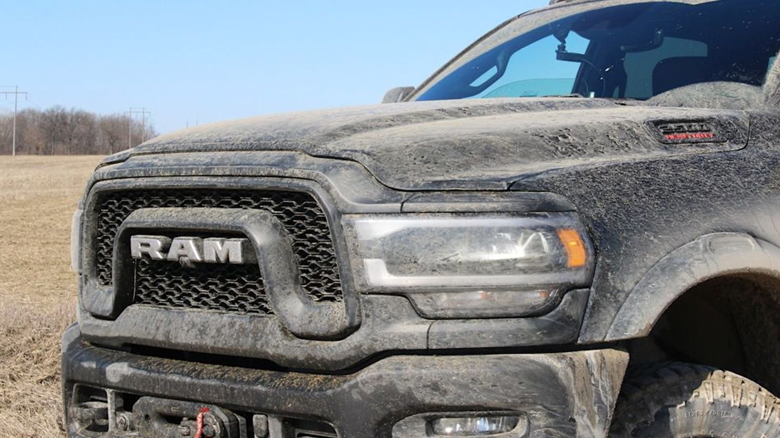 The Ram Power Wagon features one of the toughest looking front ends in the industry. A large "Ram" logo takes center stage on the massive grill. There isn't much that wouldn't move out the way seeing a grill like this behind you.