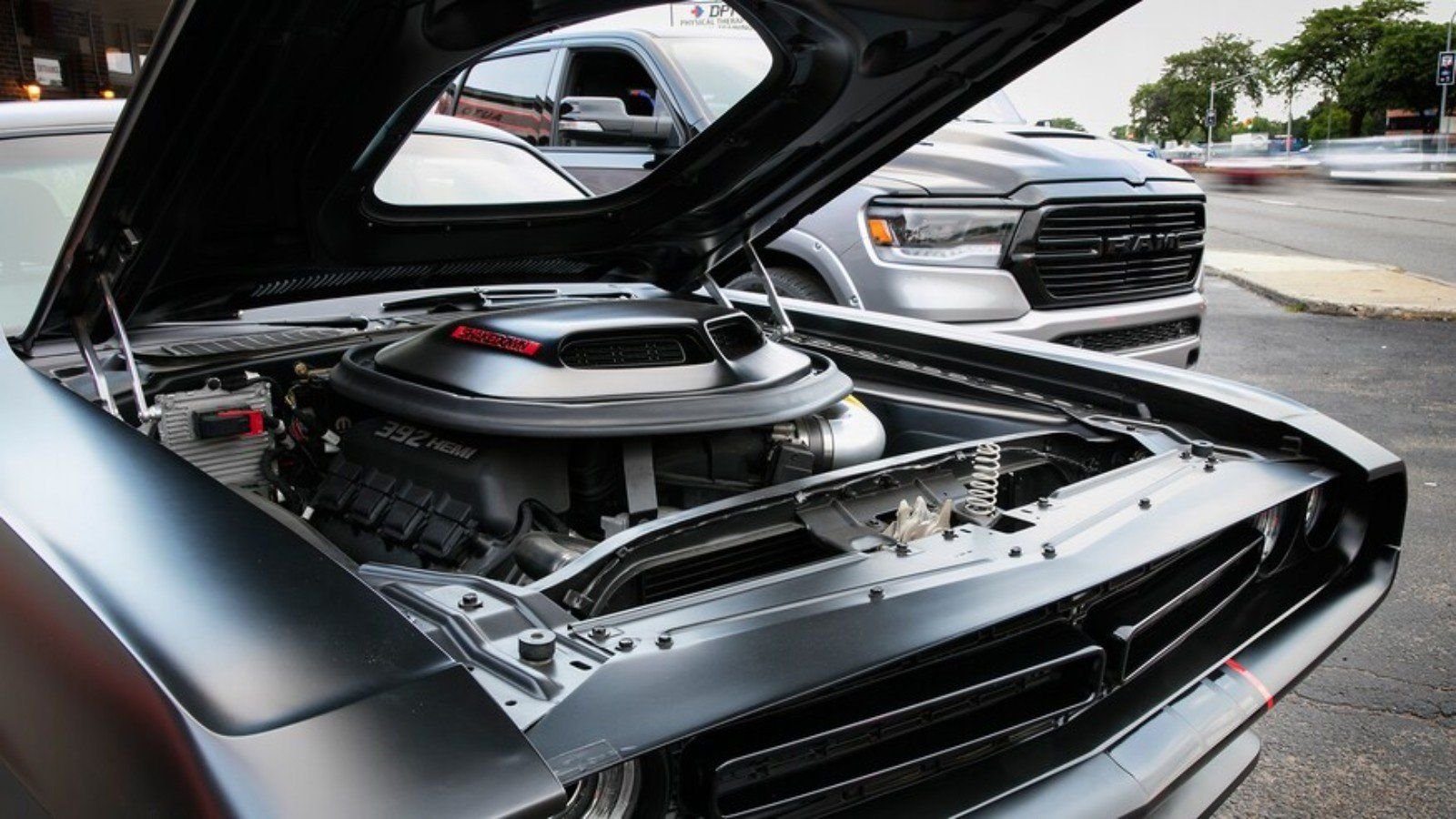 You can't have a restomod without a new motor, and this Challenger has a nice one in the form of a crate Hemi 392. With a Mopar concept cold-air intake and Mopar custom dual exhaust, the modern naturally-aspirated mill pumps out a respectable 485 hp and 475 lb-ft of torque.